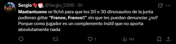 Aunque el Real Madrid halla ganado recientemente, Mastantuono sigue sin convencer a los hinchas del Real Madrid, quienes no tardaron en expresar su disconformidad en las redes sociales.